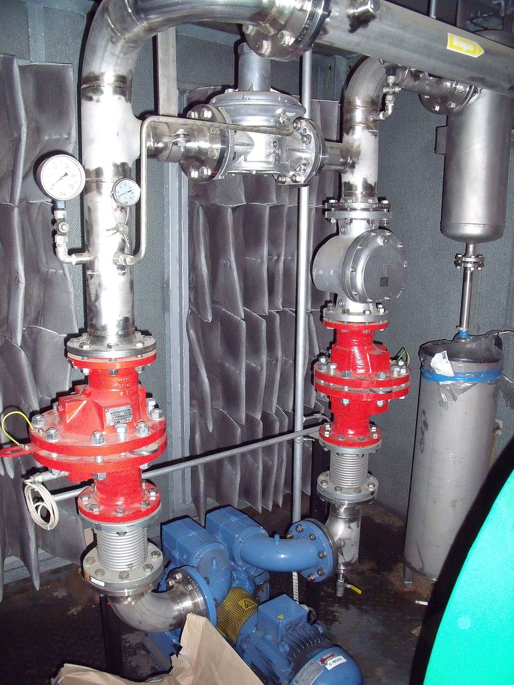 Be- und Entlüftungshauben übernehmen hier eine Doppelfunktion: Sie schützen Tanks und Behälter vor unzulässigen Über- und Unterdrücken und begrenzen gleichzeitig den Eintrag von Fremdluft. In explosionsgefährdeten Bereichen werden sie häufig mit integrierten Flammensperren ausgeführt, um einen Flammendurchschlag in den Behälter zu verhindern. Deflagrationsrohrsicherungen sind für Anwendungen ausgelegt, in denen mit vergleichsweise langsamen Flammenfronten zu rechnen ist. Sie stoppen die Flamme innerhalb der Rohrleitung, indem sie Wärme entziehen und die Verbrennungsreaktion abbrechen, bevor sie auf nachgelagerte Anlagenteile übergreift. Für deutlich höhere Drücke und Flammengeschwindigkeiten kommen Detonationsrohrsicherungen zum Einsatz, die so ausgelegt sind, dass sie auch den extremen Belastungen einer Detonation standhalten.
