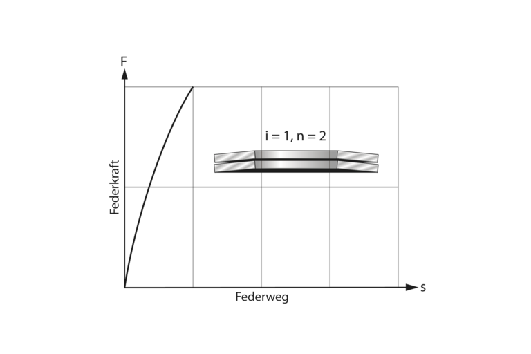 Im Unterschied zu Schraubenfedern lassen sich Tellerfedern schichten, um unterschiedliche Federkennlinien zu erhalten (lineare, degressive oder progressive Kennlinien ):
