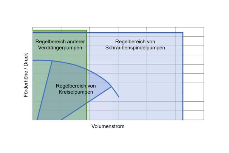 Darüber hinaus eignen sich Schraubenspindelpumpen für Anwendungen mit einem sehr weiten Viskositäts- sowie Fördermengenbereich. Keine andere Pumpentechnologie ermöglicht einen derart großen Regelbereich.