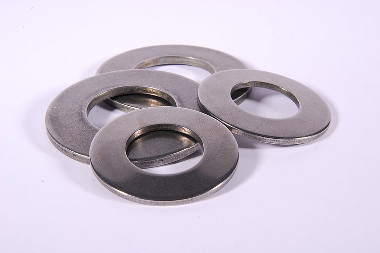 Standard material is spring steel according to DIN EN 10132-4 (e.g., 1.1231, 1.8159 / 51CrV4). Disc springs made of stainless steel or as ball bearing disc springs are also available upon request – for applications with corrosion or temperature requirements.